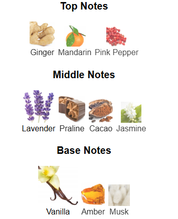 Middle: Lavender, Praline, Cacao, Jasmine