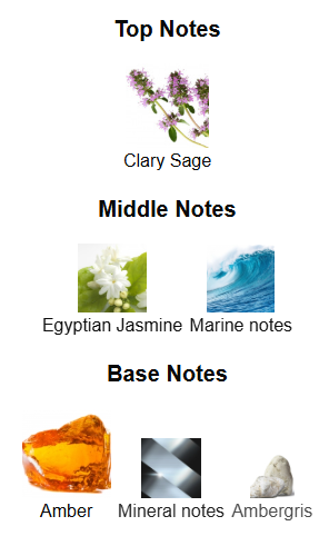Base: Amber, Ambergris, Mineral (Salt/Aquatic) Notes
