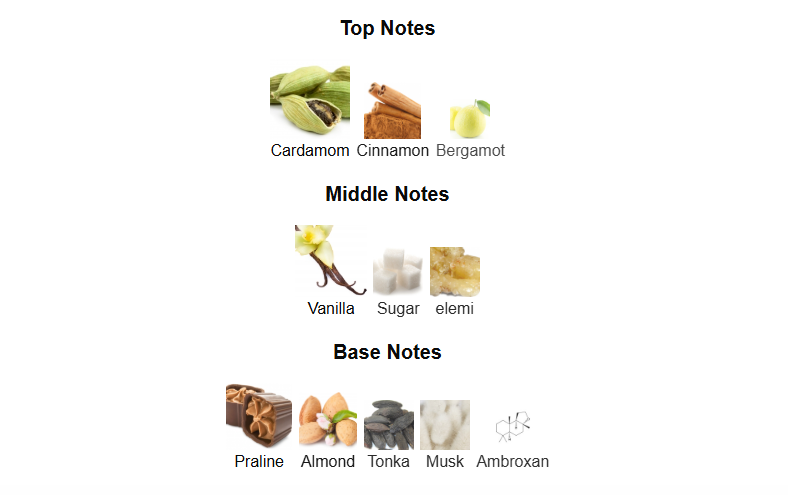 Base Notes: Praline, Almond, Tonka, Musk, Ambroxan, Woods