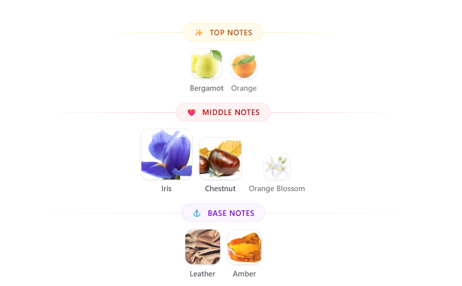 Floral Notes, Soft Spices creating a balanced and graceful heart with subtle warmth.
