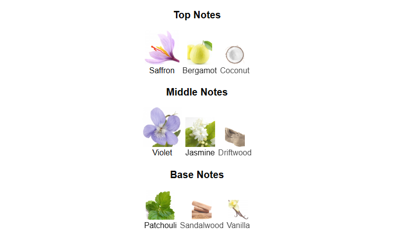 Top: Saffron, Bergamot, Coconut