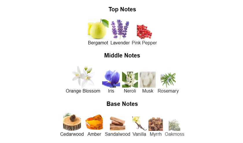 Top Notes: Bergamot, Lavender, Pink Pepper