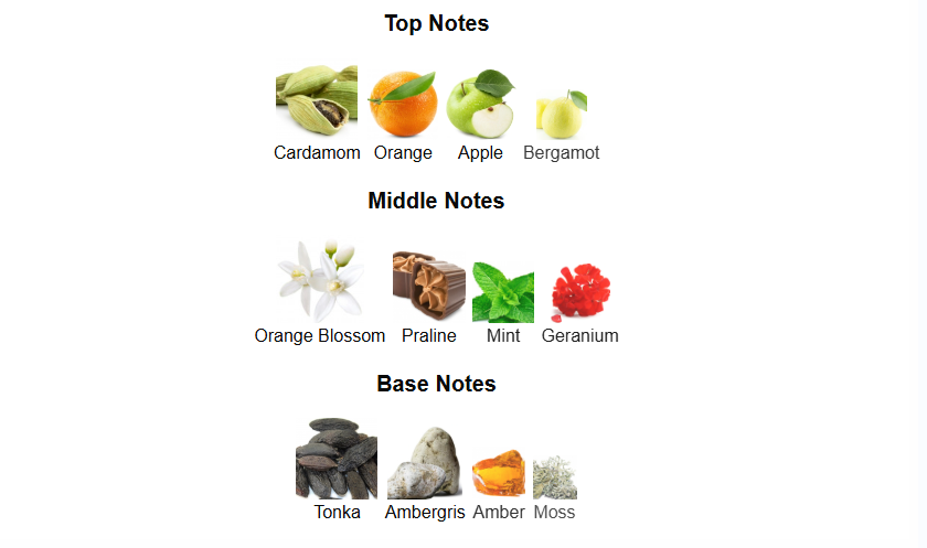 Heart (Middle) Notes: Orange Blossom, Praline, Mint and Geranium.