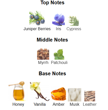 Base: Honey, Vanilla, Amber, Musk, Leather