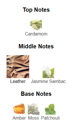 The fragrance opens with a spicy surge of cardamom, offering an intriguing and textured entrance. In the heart you’ll discover dominant leather and jasmine sambac — adding sophisticated suede-like richness and floral contrast. The base then settles into a warm fusion of amber, moss and patchouli, giving a refined woody-amber foundation that lingers elegantly.
