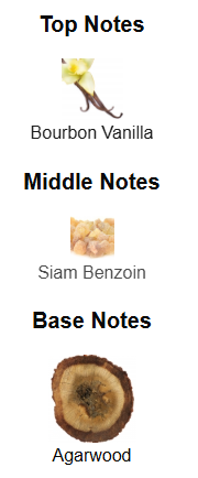 The scent opens with a plush top note of Bourbon vanilla, welcoming and comforting. In the heart, Siam benzoin offers a balsamic, resinous richness that gives the fragrance depth and warmth. The base settles into agarwood (oud) — giving the fragrance a woody, luxurious foundation that lingers with sophistication.