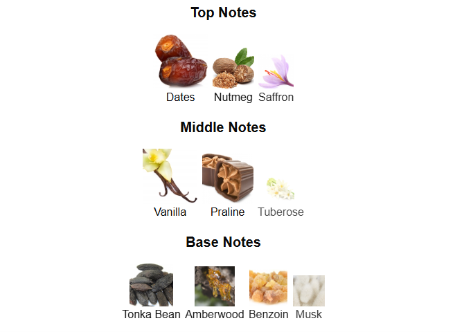Heart (Middle) Notes: Vanilla · Praline · Tuberose