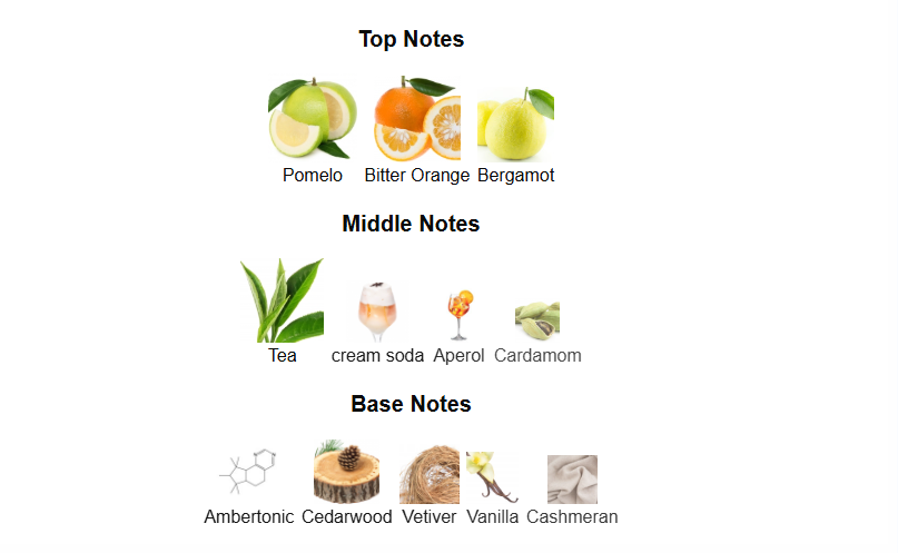 Heart (Middle) Notes: Tea, Cream Soda Accord, Aperol and Cardamom.