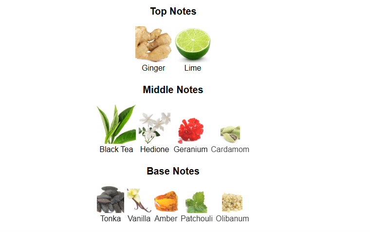 Top Notes: Lime and Ginger (with a hint of teak wood)