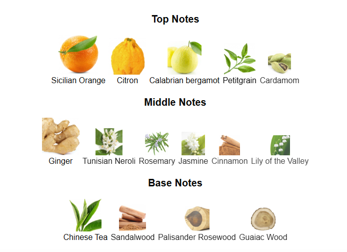 Top Notes: Sicilian orange, citron, Calabrian bergamot, petitgrain and cardamom.