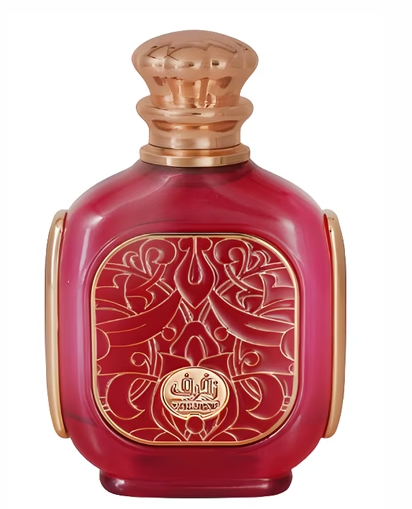 Zukhruf Cherry by Zimaya is a Fruity Gourmand fragrance for both women and men, launched in 2024. It opens with top notes of black cherry and almond, leading into a heart of cherry, plum, and jasmine. The base notes include tonka bean, vanilla, sandalwood, and cedar, creating a rich and inviting scent profile.